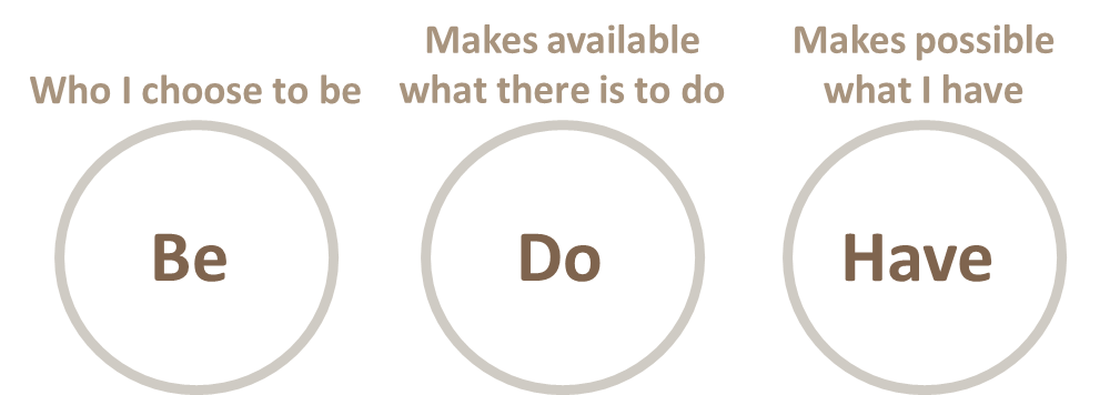 Take the case for a moment that life really works “I am _________. So, what’s available to do is _________, and __________ is the possible result.” It’s not magical law of attraction thinking, it’s simple logic and how our minds work. This framework doesn’t change reality, it changes who we are that shows up in it. As a lighthearted example, imagine I were to say to you “Someday when I win the lottery, then I am going to start buying lottery tickets, and I will be the kind of person who plays the lottery.” You might well laugh in my face as you confidently inform me “You must own a ticket to win it, fool! So, you must first choose to be a lottery player, buy your ticket, and then you can have a chance to win!” Isn’t that so?